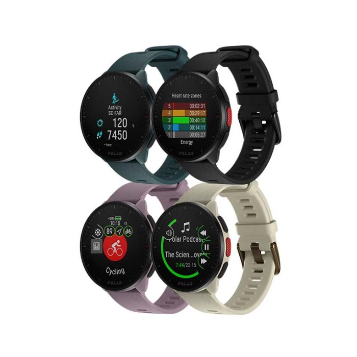 Polar Pacer fås i fire flotte farver: sort, hvid, lilla og mørkegrøn.