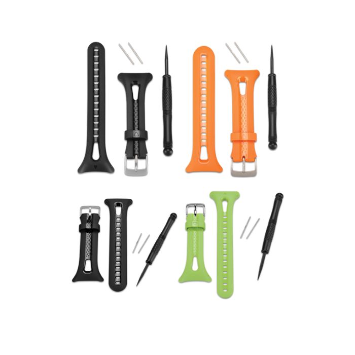Garmin Forerunner 10/15 udskiftelige urremme i forskellige farver og størrelser. Værktøj til udskiftning medfølger i pakken.